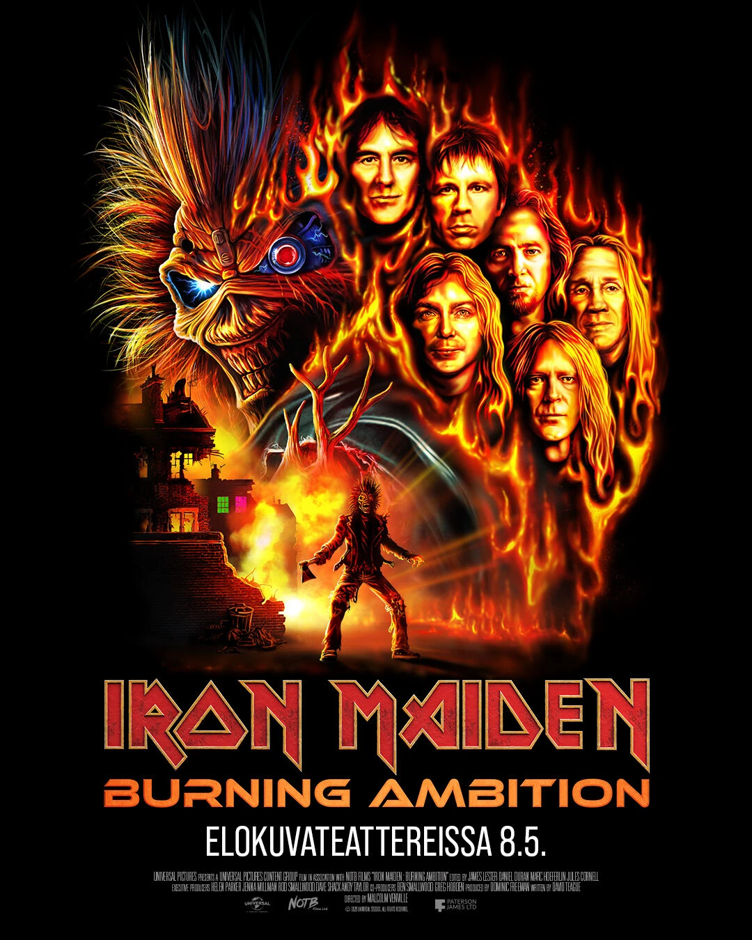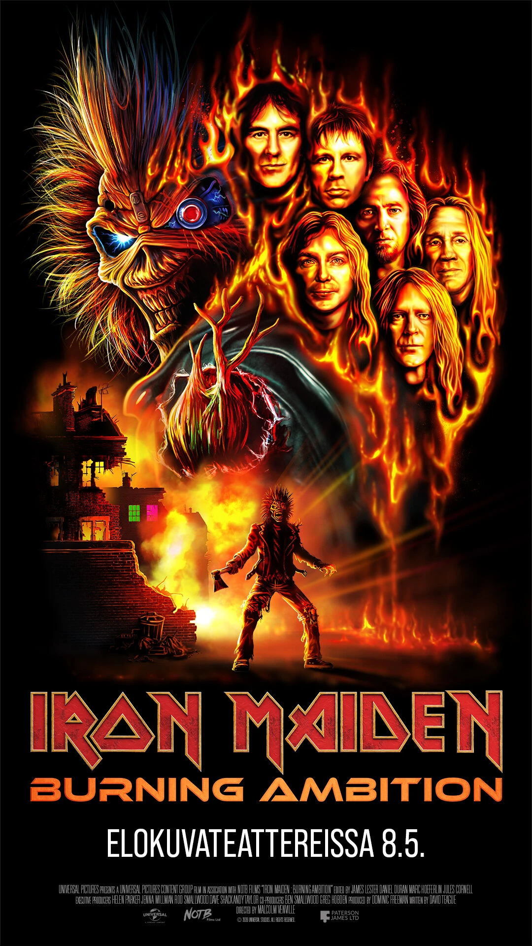 Ennennäkemätöntä materiaalia bändin omista arkistoista sisältävä IRON MAIDEN: BURNING AMBITION kertoo viiden vuosikymmenen mittaisesta matkasta, joka on yksi musiikkihistorian ikonisimmista. Elokuva sisältää haastatteluita sekä bändin jäsenten että Javier Bardemin, Lars Ulrichin ja Chuck D:n kaltaisten tukijoiden kanssa ja tarjoaa intiimin katsauksen bändin tinkimättömään visioon ja sen vankkaan yhteyteen maailmanlaajuiseen fanijoukkoonsa.